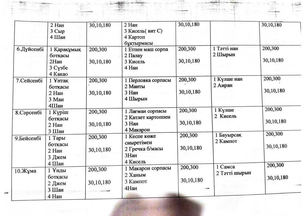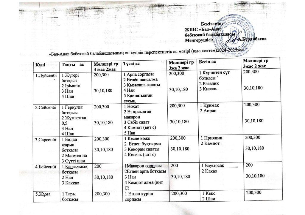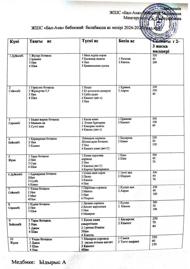 БАЛАЛАРДЫҢ АС МӘЗІРІ